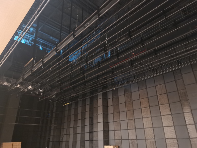 - **吊杆与悬吊系统**:采用轻量化铝合金桁架与钢丝绳组合,智能变频控制升降速度,精准定位灯光、幕布及空中道具,误差不超过±1mm。