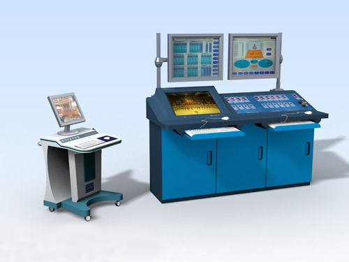 该系统由电脑操作台,PLC接口箱,强电控制柜组成。电脑操作台和PLC箱之间使用一根四芯信号线连接,最远距离可达100米,方便设备安装和使用。